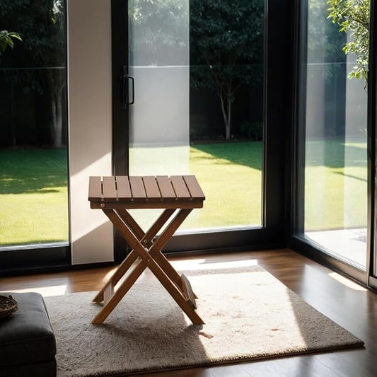 Small Side Table Square Folding, Patio Foldable Wooden End Table for Outdoor Indoor Porch Camping Living Room Bedroom, as Coffee Table or Plant Stand, Brown