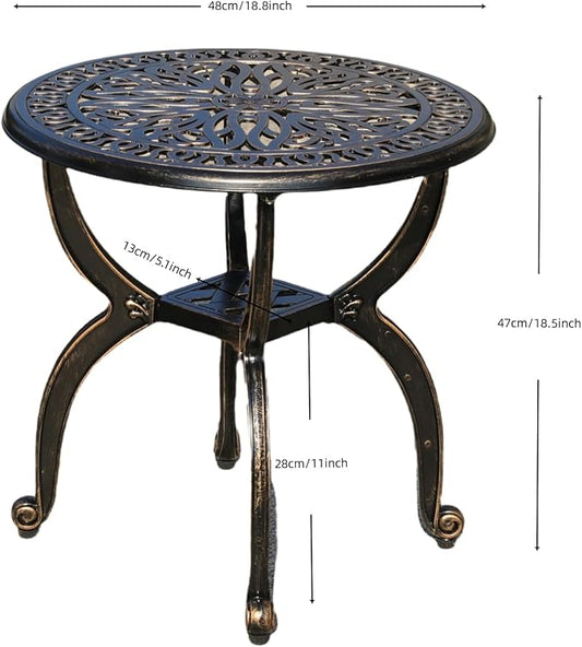 KAILI Outdoor Cast Aluminum Side Table Patio Side Table Backyard, Pool, Indoor, Easy Maintenance and Weather Resistant Coffee Table Porch Table Bistro Table (18.5round-Bronzed)