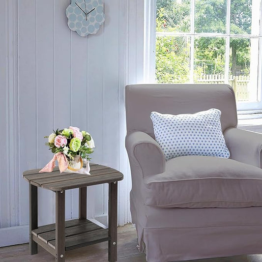 LZRS Double Adirondack Side Table, Outdoor Side Tables, End Tables for Patio, Backyard,Pool, Indoor Companion, Easy Maintenance & Weather Resistant(Brown Mixture)