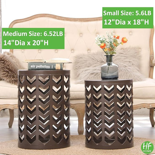 HFHOME Set of 3 Metal Outdoor Side Table, Nesting Round Coffee Table for Indoor Outdoor, Heavy Duty End Tables Plant Stand Living Room Garden Stool - Bronze