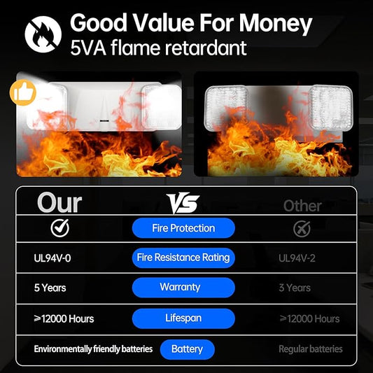 SPECTSUN 12 Pack White LED Emergency Exit Lighting Fixture with Battery Backup Exit Sign Lights-US Standard Emergency Light Combo-Fireproof Materials–Thermoplastic Housing for Indoor Outdoor