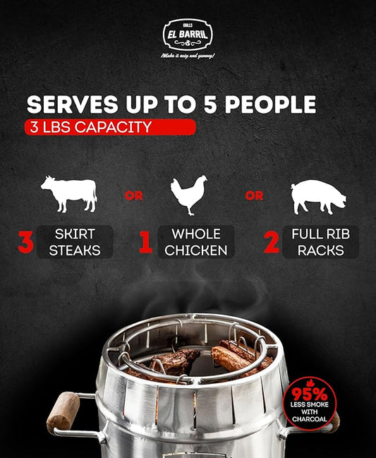 EL BARRIL 3lbs Smoker Grill Combo, Stainless Steel Barrel Charcoal Smoker – Smoke or Grill, Portable with Grilling Accessories