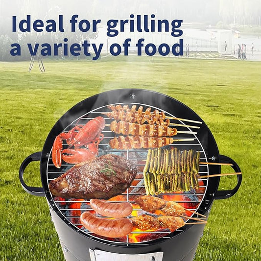 17 inch Vertical Charcoal Smoker, BBQ Grill, Fire Pit, 3-in-1 with Built-in Thermometer, Adjustable Air Vent, Idea for Parties, Backyard, Patio, Camping