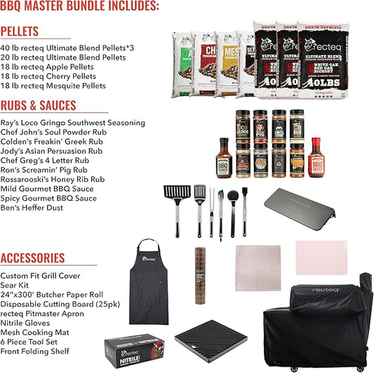 recteq RT-2500 BFG Pellet Smoker Grill, Wi-Fi-Enabled Outdoor Grills & Smokers, Electric Pellet Grill with 2500 Sq In Cook Space, RT-2500 BFG + Grilling Essentials Bundle