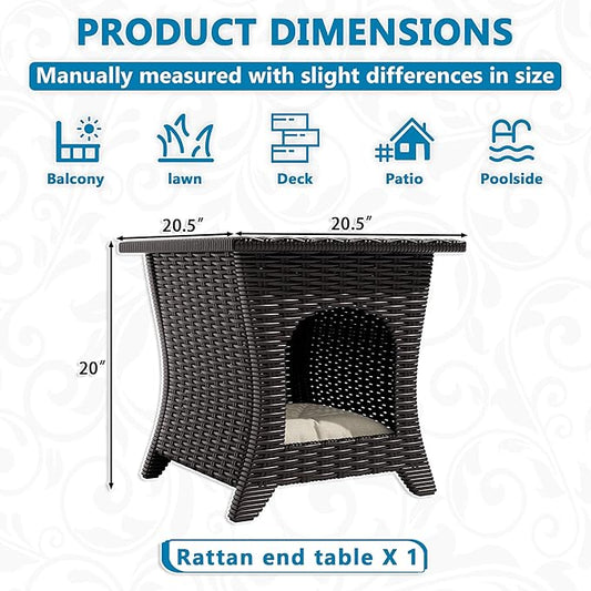 Vista Vibe Patio Wicker Side Table, All-Weather Rattan Furniture, 2 in 1 End Table & Pet Nest for Porch, Sunroom, Garden (Beige)