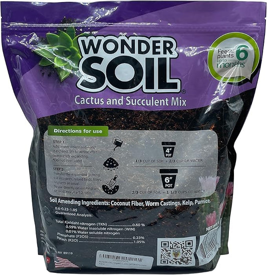 WONDER SOIL | Organic Cactus & Succulent Soil (12 Quarts). Fast Draining Ready to Plant Coco Coir Loaded w/Nutrients | 3 LBS Expands to 12 Quarts | Incl Worm Castings & Nutrients