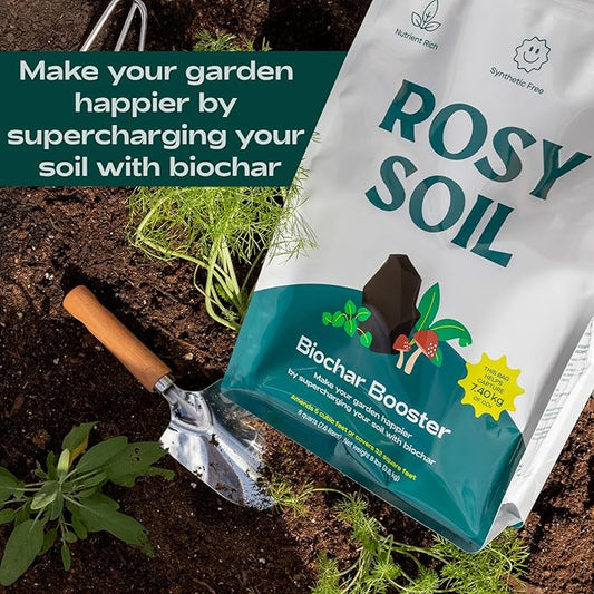 Rosy Soil Biochar Booster - Biochar Soil Amendment for Flowers and Vegetable Gardens - Horticultural Charcoal for Outdoor and Indoor Plants - Biochar Supplement for Potting Soil & Potting Mixes - 8qt