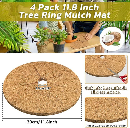 Legigo 4pcs Coconut Fiber Mulch Ring Tree Plant Protector Mat, 11.8 Inch Natural Coco Coir Tree Protection Ring Plant Pot Soil Cover, Tree Rings Disc Plant Cover for Indoor Outdoor Plants, Landscaping