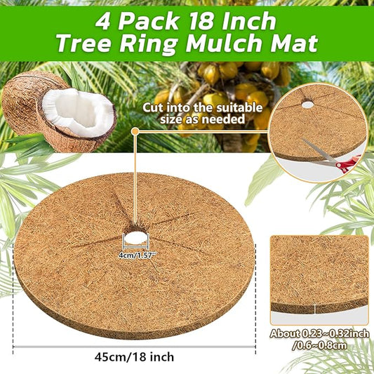 Legigo 4pcs Coconut Fiber Mulch Ring Tree Plant Protector Mat, 18 Inch Natural Coco Coir Tree Protection Ring Plant Pot Soil Cover, Tree Rings Disc Plant Cover for Indoor Outdoor Plants,Landscaping