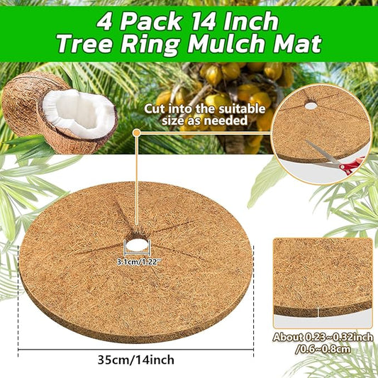 Legigo 4pcs Coconut Fiber Mulch Ring Tree Plant Protector Mat, 14 Inch Natural Coco Coir Tree Protection Ring Plant Pot Soil Cover, Tree Rings Disc Plant Cover for Indoor Outdoor Plants,Landscaping