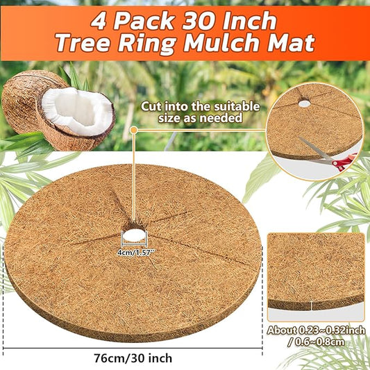 Legigo 4pcs Coconut Fiber Mulch Ring Tree Plant Protector Mat, 30 Inch Natural Coco Coir Tree Protection Ring Plant Pot Soil Cover, Tree Rings Disc Plant Cover for Indoor Outdoor Plants,Landscaping
