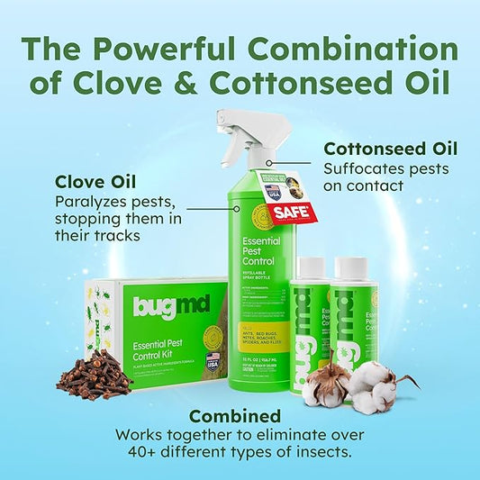 BugMD Ant Killer & Bug Spray - Roach and Cockroach Killer Indoor, Spider Spray for Home, Fly and Insect Defense, Natural, Safe with Essential Oils, Plant-Powered, Pest Control - Starter Kit