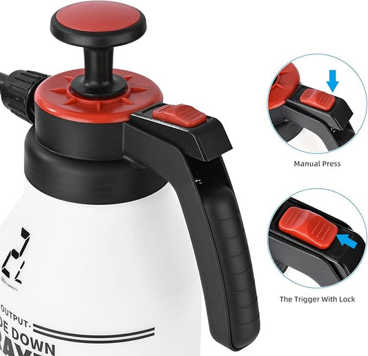 FOSHIO 0.53 Gallon Garden Pump Sprayer, 2L Portable Hand Pump Pressure Water Spray Bottles with Adjustable Nozzle Trigger Lock Sprayer for Home, Lawn and Car Detailing