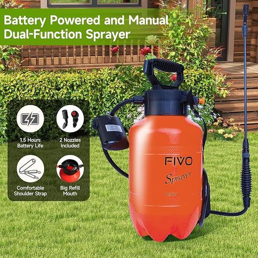 Battery Powered and Manual Sprayer (Dual Function) for Yard, Garden and Agriculture 1.35 Gallon
