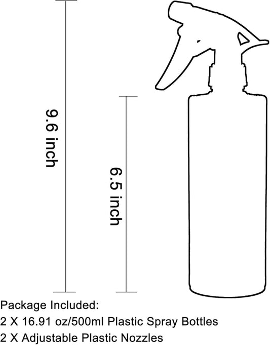 OFFIDIX 360° Water Spray Bottle 2 Pack 16 oz Continuous Plastic Empty Spray Bottles Mister for Hair,Cleaning,Plants,Upside Down,Fine Mist and Stream Setting,Black