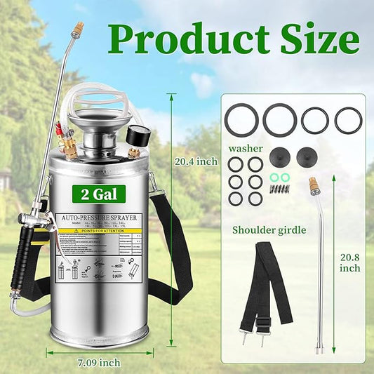 Hand Pump Sprayer Stainless Steel Sprayer for Indoor and Outdoor 2 Gallon Sprayer 20 in Wand 3.3 FT Hose