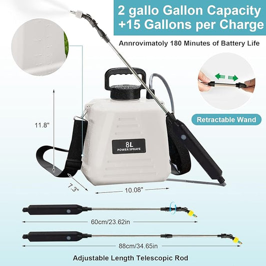 Battery Powered Sprayer 2 Gallon, 2025 Upgraded Electric Garden Sprayer with 3 Nozzles & 4 Spray Modes,Rechargeable Handle, Retractable Wand and Adjustable Shoulder Strap for Weed Killer, Lawn, Yard