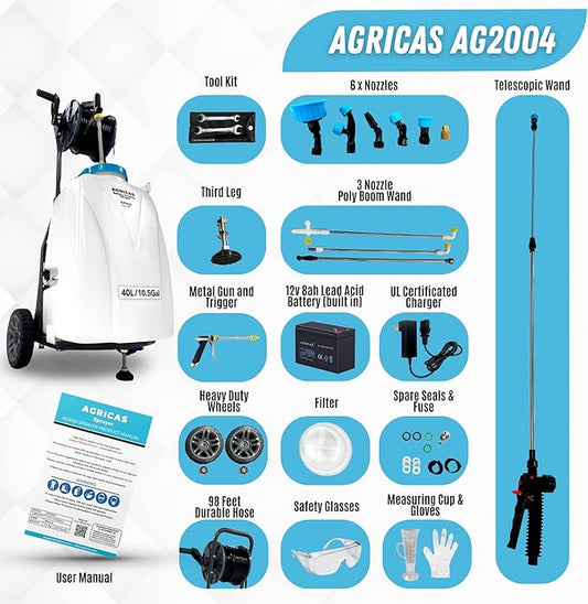 10.5 Gal Battery Powered Sprayer with Double Professional Pump with Wheels, Multifunctional and Portable Weed Sprayer for Lawn & Garden with Adjustable HD Wand and Nozzles