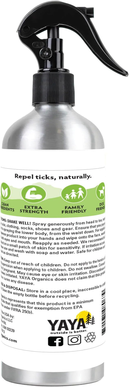 Yaya Organics All Natural Extra Strength Tick Repellent DEET Free - 16 Ounce Spray Bottle