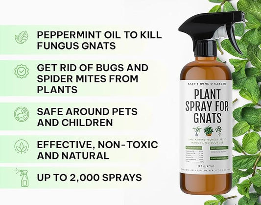 Kate's Home & Garden Plant Spray for Insects & Getting Rid of Gnats with 12 Sticky Traps. Fungus Gnat Killer & Bug Spray for Indoor Plants (16oz, Peppermint, Pet Safe, Non Toxic)