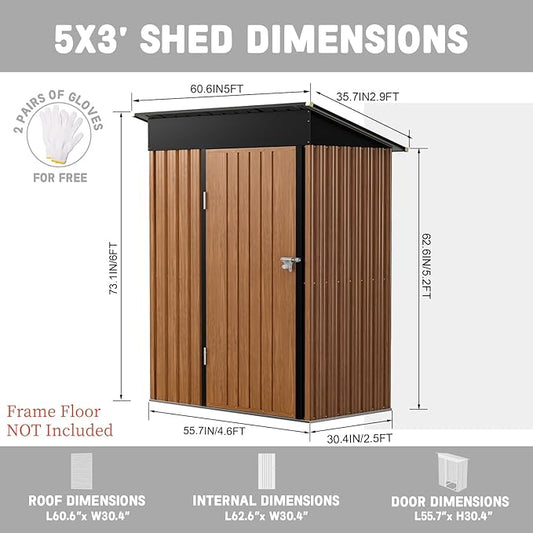 3x5FT Outdoor Storage Shed, Metal Garden Shed with Updated Frame Structure & Lockable Door, Large Tool Shed for Backyard, Patio,Lawn,Utility & Bike Storage