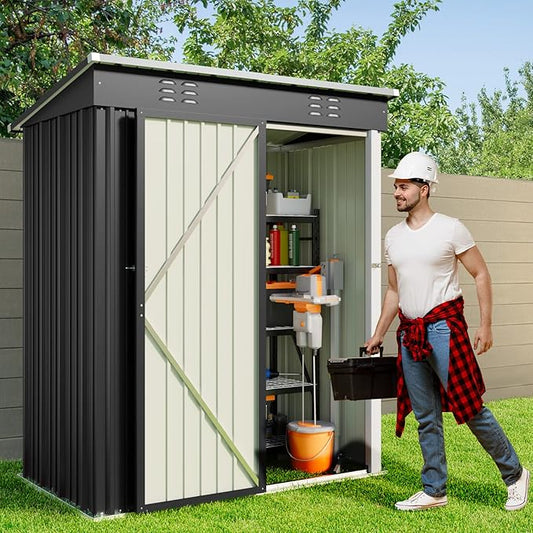 AECOJOY 5' x 3' Outdoor Storage Shed, Small Metal Sheds & Outdoor Storage Clearance with Lockable Door, Utility and Tool Storage Garden Shed for Backyard, Patio, Outside use in Dark Grey