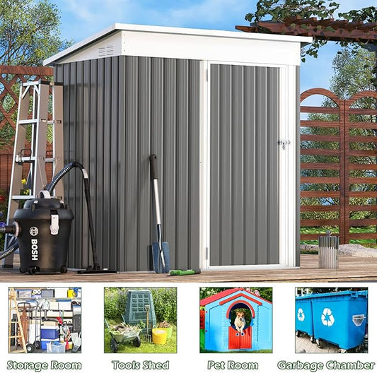 Gizoon 5 'x 3'Outdoor Storage Shed with Singe Lockable Door,Galvanized Metal Shed with Air Vent Suitable for The Garden,Tiny House Storage Sheds Outdoor for Backyard Patio Lawn-Dark Gray