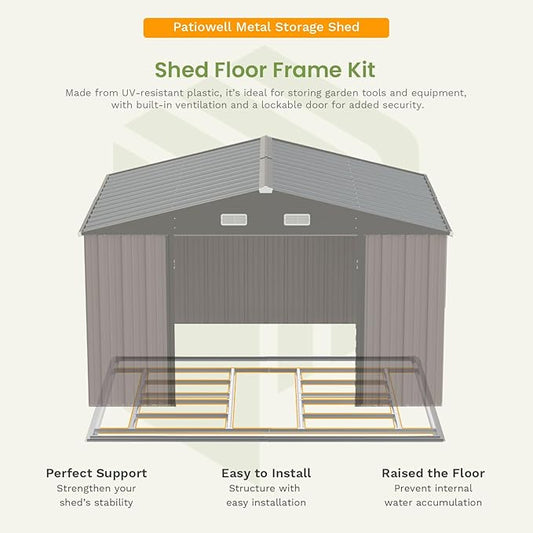 Patiowell 10 x 8 FT Outdoor Storage Shed with Floor Frame, Large Garden Tool Metal Shed with Sloping Roof and Double Lockable Door for Backyard Garden Patio Lawn,Grey