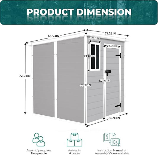 Resin Storage Shed 6x6ft Outdoor Storage Sheds with Floor & Window, Lockable Doors and Vents, Small Tool Shed with Sloped Roof, Sheds for Backyard, Garden, Patio, Lawn (Light Grey, 6 * 6ft)