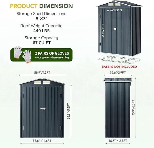Breezz 5x3FT Vertical Outdoor Steel Storage Shed,Lockable Doors, Compact Metal Tool Shed for Garden, Backyard, Patio, Utility, and Bike Storage,Nightblue