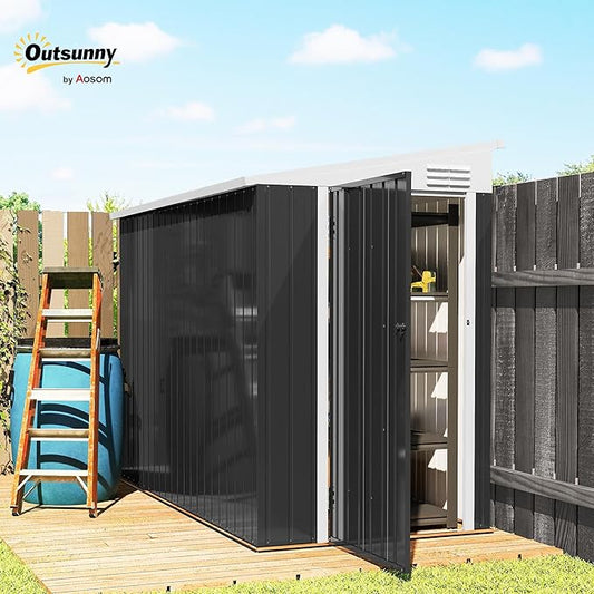 Outsunny 4' x 7.7' Metal Outdoor Storage Shed, Lean to Storage Shed, Garden Tool Storage House with Lockable Door and 2 Air Vents for Backyard, Patio, Lawn, Dark Gray
