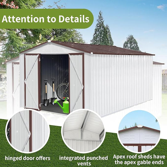 Patiowell 10 x 12 FT Metal Storage Shed for Outdoor, Steel Yard Shed with Design of Lockable Doors, Utility and Tool Storage for Garden, Backyard, Patio, Outside use,Brown