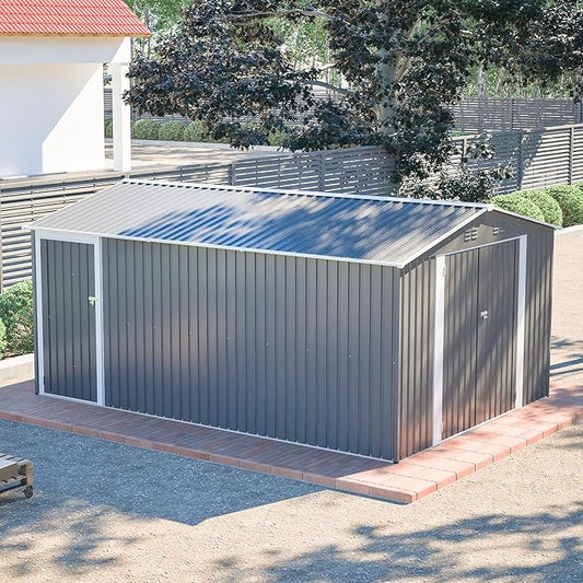 12x10FT Heavy-Duty Metal Storage Shed, Extra-Large Outdoor Shed with Apex Roof, Steel Vents & Hinged Door, Includes Free Padlock for Secure Tool & Equipment Storage (Easy Assembly)