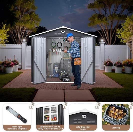 8x6 FT Outdoor Storage Shed, Metal Garden Shed - Tool Storage Sheds with Lockable Doors & 1 Clear Window, Waterproof Outside Storage Building for Backyard, Patio (Black; Floor Not Included)