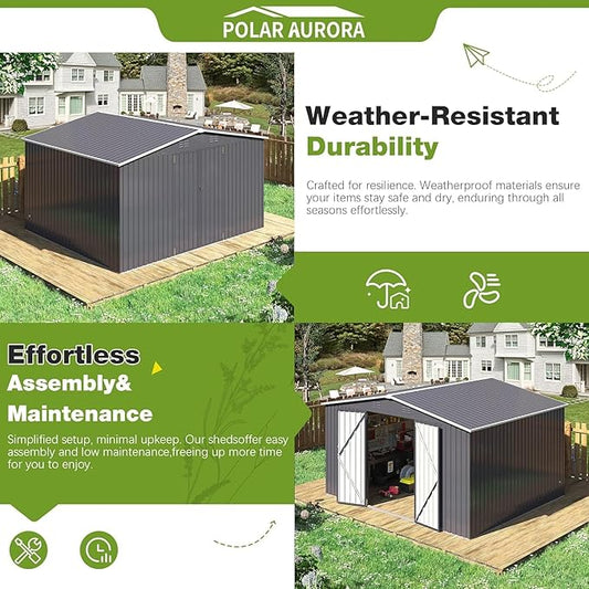 Polar Aurora Outdoor Storage Shed, Metal Garden Shed with Updated Frame Structure, Tool Sheds for Backyard Garden Patio Lawn (Black, 12x10 FT)