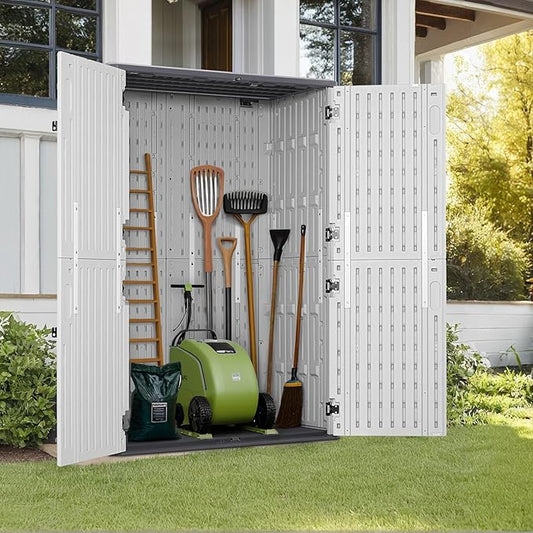 Macrout 50 Cu.Ft Plastic Outdoor Storage Cabinet with Floor, 4.3 x 2.5 ft Waterproof Resin Outdoor Storage Shed, Lockable Vertical Shed for Garden and Patio