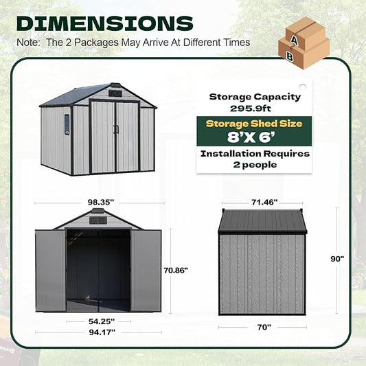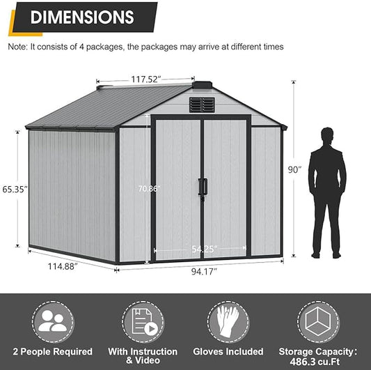 8 x 10 FT Resin Storage Tool Shed, All-Weather Outdoor Storage Shed with Windows, Lockable Doors & Floor, Plastic Storage Shed for Patio, Poolside, Backyard, Garden