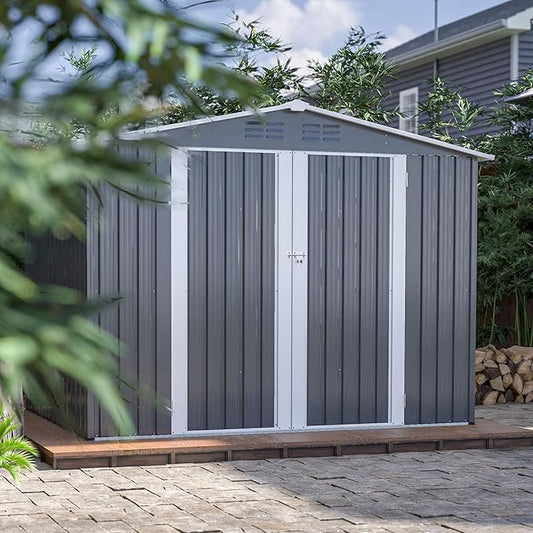 6x8FT Metal Shed & Outdoor Storage Shed with Floor Frame,Steel Tool Multi-Used Shed with Vents,Lockable Doors,Window,Compact Tool Shed for Backyard, Patio, Lawn and Garden Various Storage(Matte Gray)