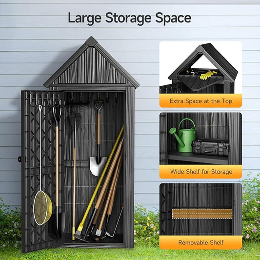 Multifunctional Storage Shed, Outdoor Storage Cabinet with Hooks and Lock Ring, Waterproof Outdoor Storage Shed for All Weather, Tool Outdoor Shed for Patio Lawn and Garden