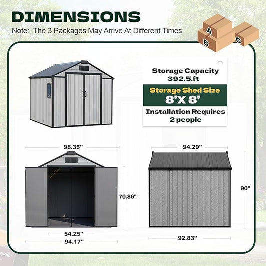 GUNJI 8 x 6 FT Shed Outdoor Storage Shed Metal Garden Shed with Lockable Door Outside Waterproof Tool Shed for Backyard, Patio, Lawn (White)