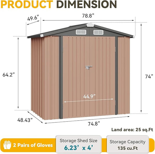 GUNJI 10 x 10 FT Shed Outdoor Storage Shed Metal Garden Shed with Lockable Door Outside Waterproof Tool Shed for Backyard, Patio, Lawn (Brown)
