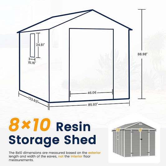 UDPATIO Storage Shed 8 x 10 FT, Resin Outdoor Garden Sheds with Floor Plastic Patio Outdoor Storage with Lockable Door for Tool, Bike, Garbage Gray White