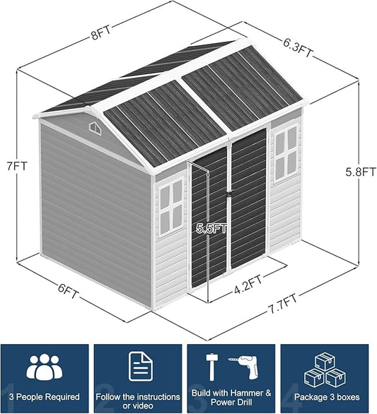 Devoko Plastic Outdoor Storage Shed with Floor, 8 x 6 FT Resin Tool Garden Shed with DIY Window and Lockable Door, Outside Kick-it Shed for Patio,Garden, Backyard, Lawn, Beige