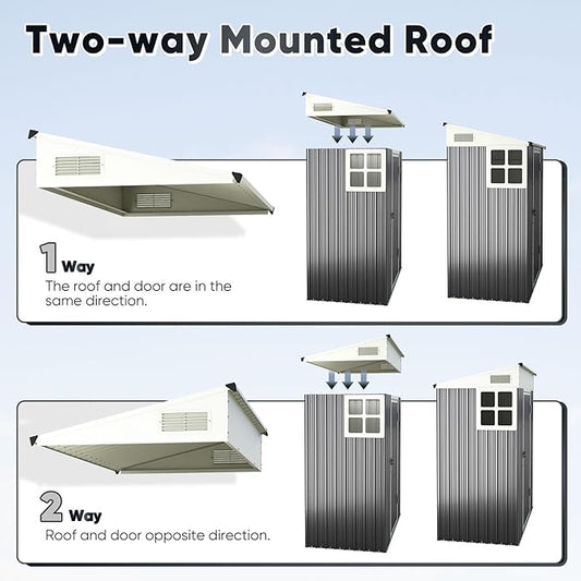 Quictent 5X3 FT Heavy Duty Outdoor Metal Storage Shed,Lockable Garden Shed with Rotating Roof, Waterproof Shed for Bike Storage, Tool Storage, Temporary Storage,Dark Gray(5.5X2.8 FT Base, No Floor)