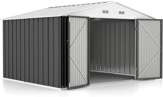 GUNJI 10 x 8 FT Shed Outdoor Storage Shed Metal Garden Shed with Lockable Door Outside Waterproof Tool Shed for Backyard, Patio, Lawn (Gray)