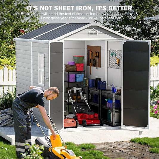 Restland Resin Storage Shed with Floor 8x6 FT Outdoor Waterproof Wider Door Plastic Sheds Kit for Backyard Garden Patio Lawn Tools, Gray