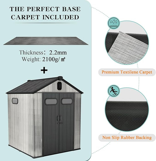 Domi 6x6FT Resin Outdoor Storage Shed with Lockable Door, Waterproof Outside Sheds with Windows & Vents, Heavy-Duty Plastic Tool Storage Shed for Patio Furniture, Lawn Mower, Bike