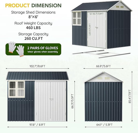 Breezz 6X8FT Outdoor Steel Storage Shed with Frame Floor,Clear Window, Lockable Doors, Weather-Resistant Metal Tool Shed for Garden, Backyard, Patio, and Utility Storage,Nightblue