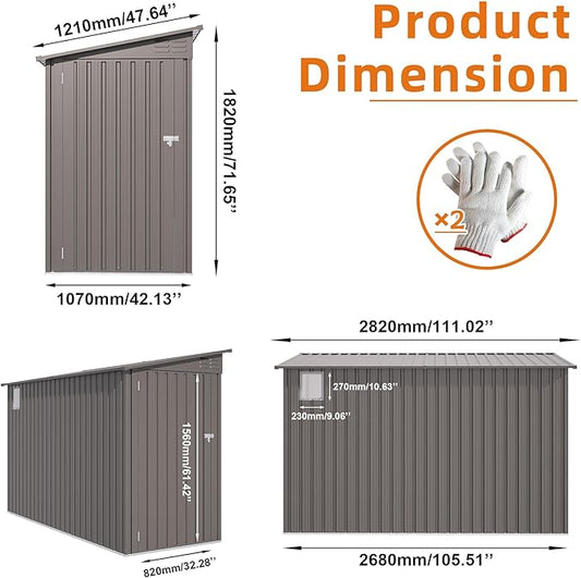 4 * 9.2 FT Outdoor Storage Shed, Galvanized Steel Garden Shed with Lockable Door & Window, Waterproof Metal Tool Storage for Garden, Backyard, Patio, Lawn(Gray)