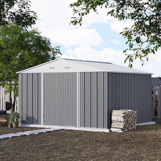 Outdoor Storage Sheds 10X8X6 FT Metal Shed with Sliding Door and Air Vents for Garden, Backyard, and Patio